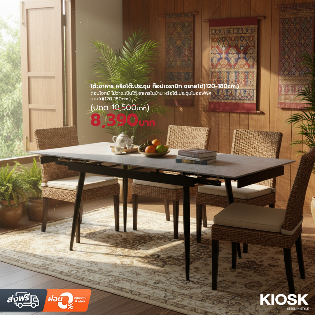 มอบความพิเศษสุดๆ กับ "โต๊ะอาหารเพิ่มขนาดได้" ด้วยนวัตกรรมใหม่ล่าสุด! หน้าโต๊ะเซรามิคที่ทนทานและดีไซน์หรูหรา พร้อมฟังก์ชันปรับขนาดได้ตามการใช้งาน ตอบโจทย์ทุกพื้นที่อย่างลงตัว ในราคา Shock Price! ที่คุณไม่ควรพลาด