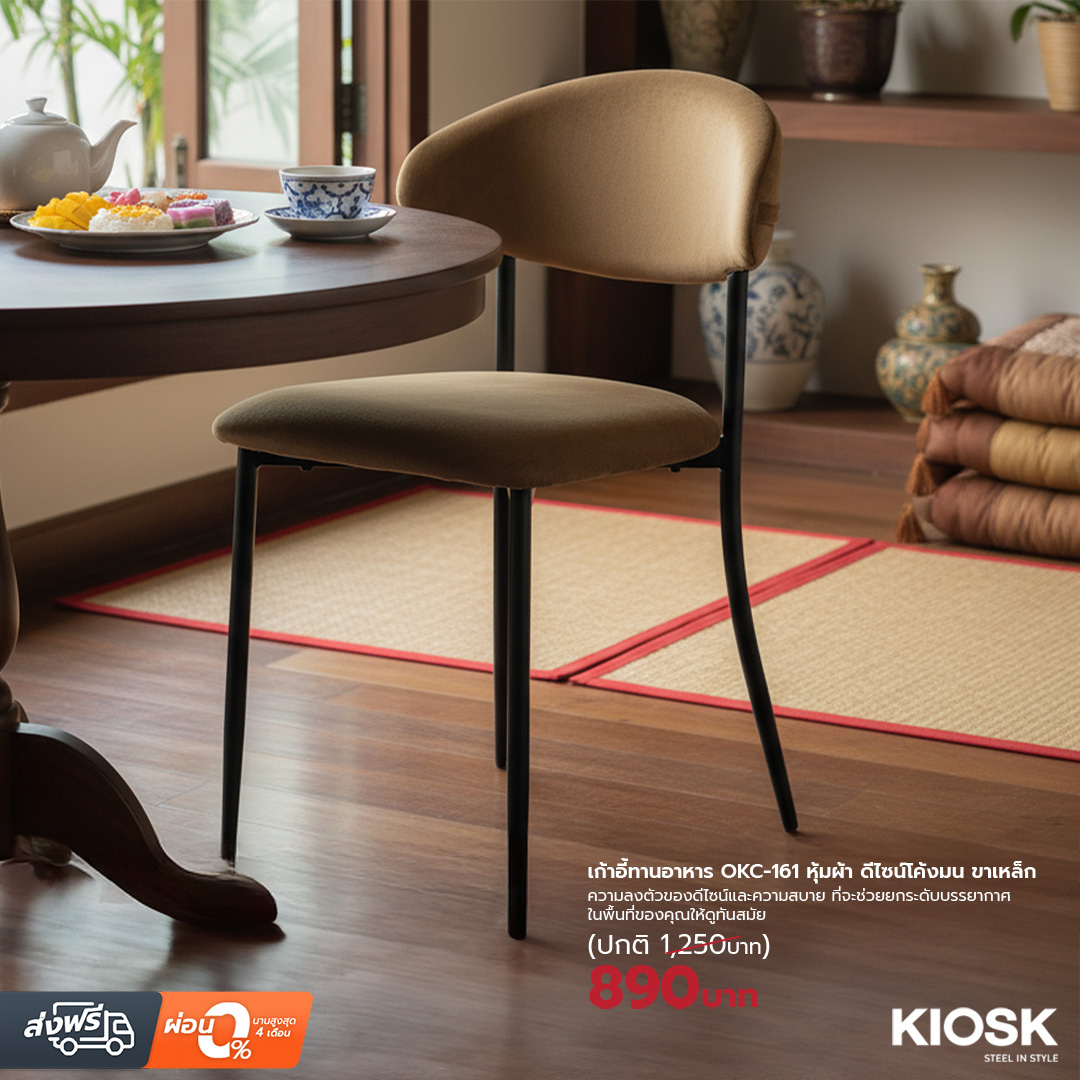 เก้าอี้ทานอาหาร OKC-161 หุ้มผ้า ขาเหล็ก: (ปกติ 1,250 บาท) พิเศษ! 890 บาท