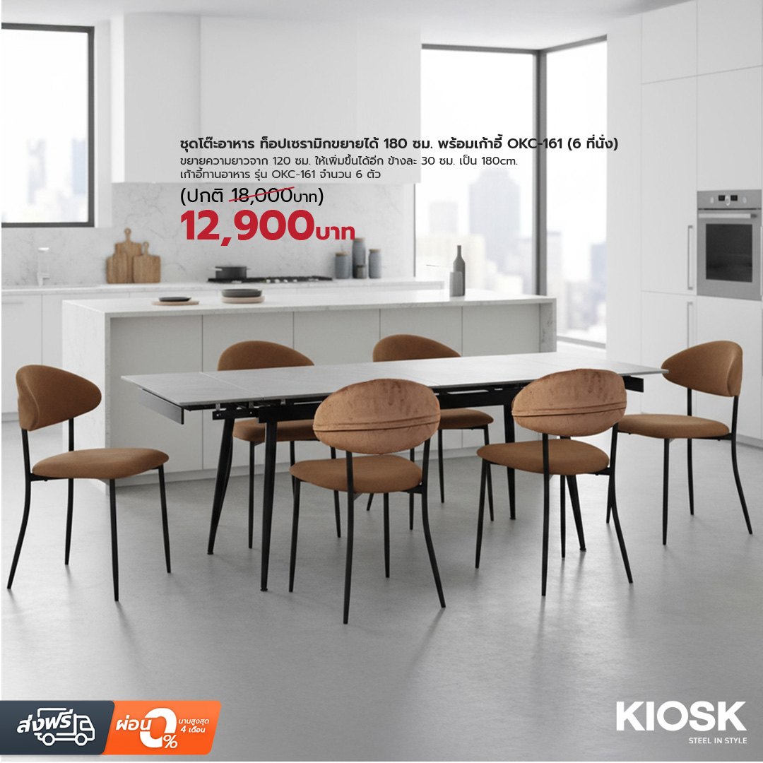 ชุดโต๊ะอาหาร ท็อปเซรามิกขยายได้ 180 ซม. พร้อมเก้าอี้ OKC-161 (6 ที่นั่ง): (ปกติ 18,000 บาท) พิเศษ! 12,900 บาท