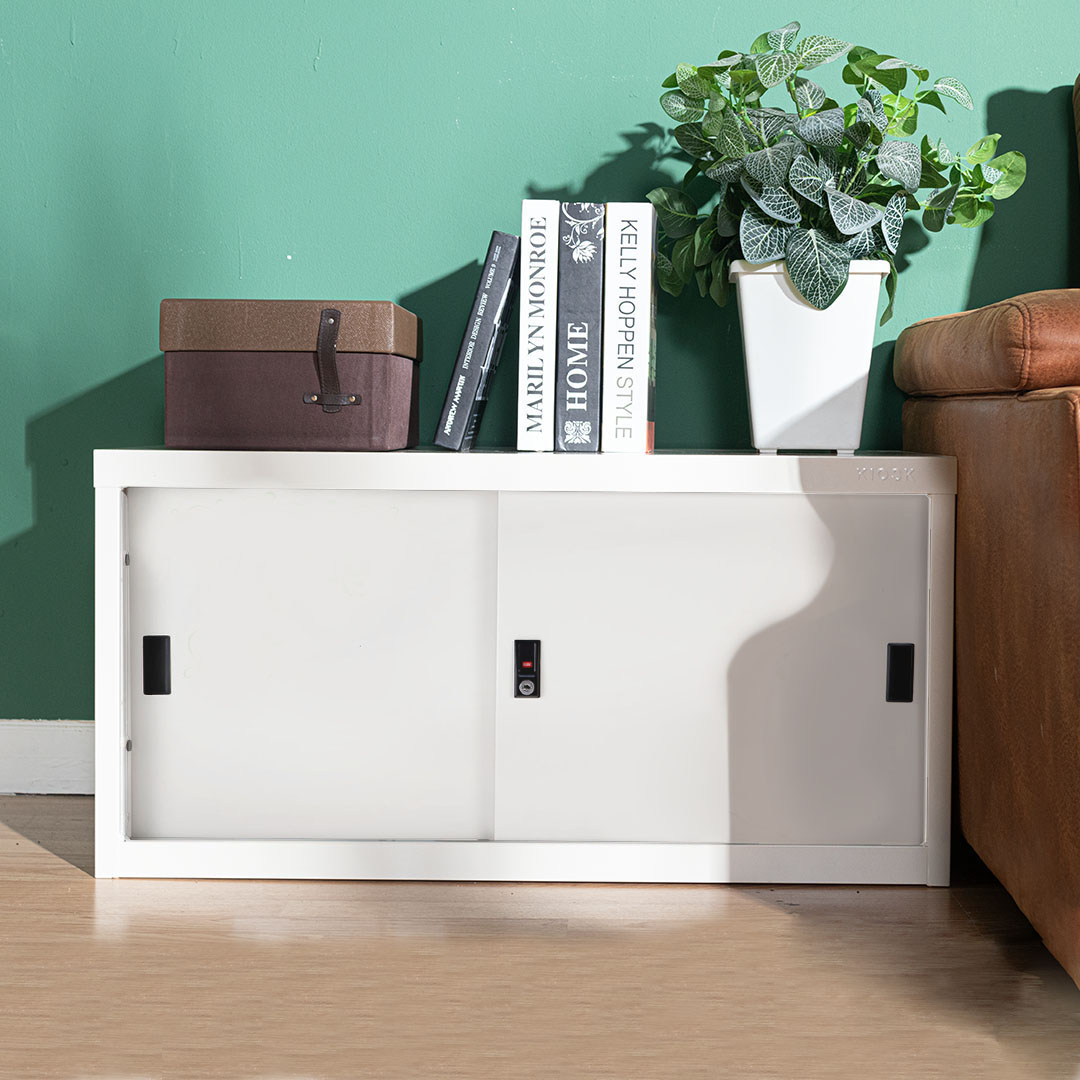 Pintu baja S-box dengan 1 rak dan kunci. Lemari pintu geser dengan 1 rak yang dapat dilepas dan kunci.