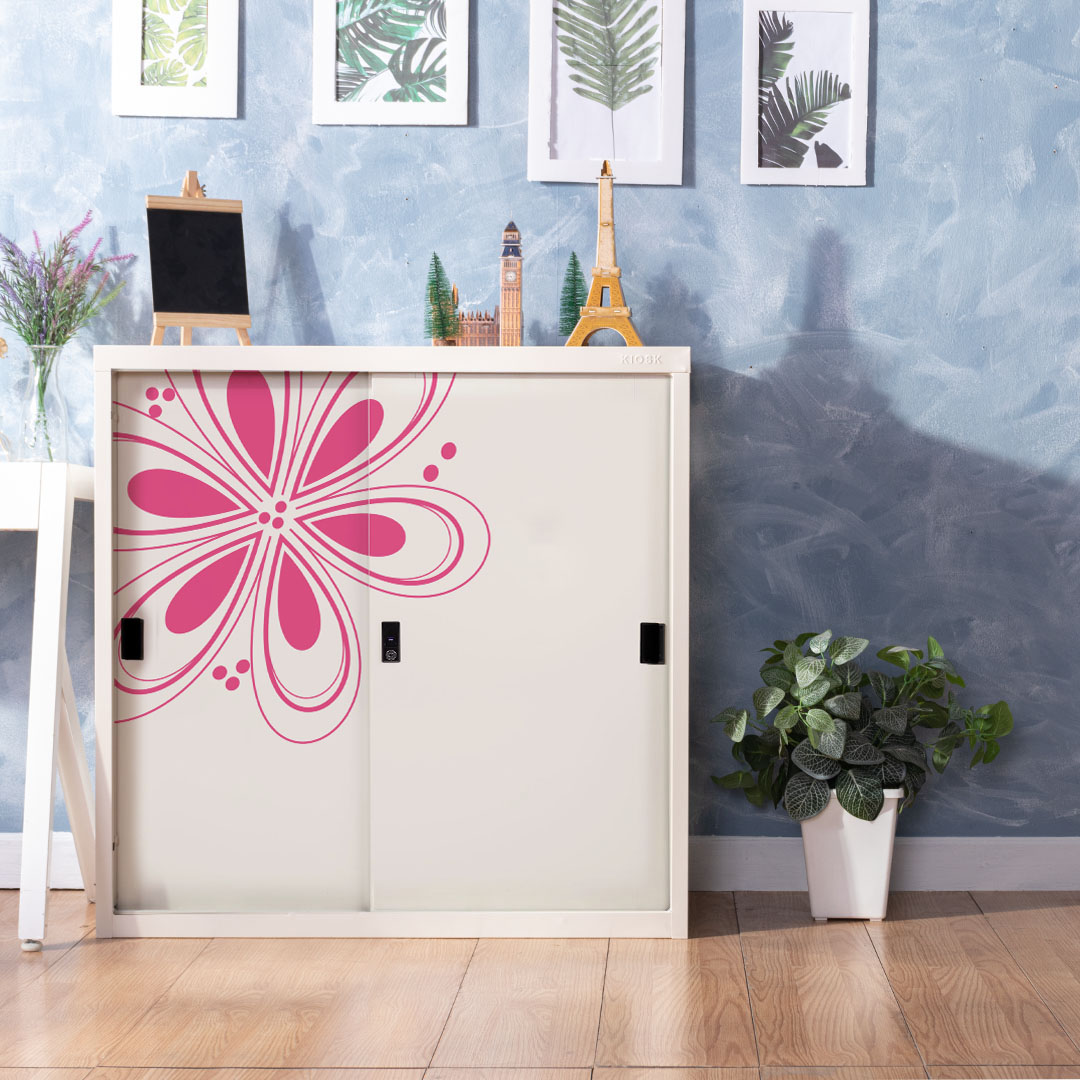 Lemari dengan pintu geser, dilengkapi dengan 2 rak yang dapat disesuaikan dan kunci. (Termasuk grafis) Termasuk 2 rak yang dapat disesuaikan. Rak tambahan juga tersedia untuk dijual dengan 6 gaya grafis yang tersedia.