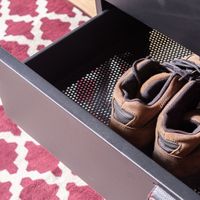 အံဆွဲ (၂)ခုပါသော အ၀တ်ချိတ်စင်။ အောက်ခြေရှိ အံဆွဲများတွင် လေ၀င်ထွက်ပေါက်ပါရှိသည့်အတွက် ဖိနပ်နှင့် အခြားအရာများအား အနံ့အသက်ကင်းစွာဖြင့်ထားရှိနိုင်သည်။ အံဆွဲလက်ကိုင်အား အကောင်းဆုံး PU သားရေသားဖြင့်ပြုလုပ်ထားသည်။