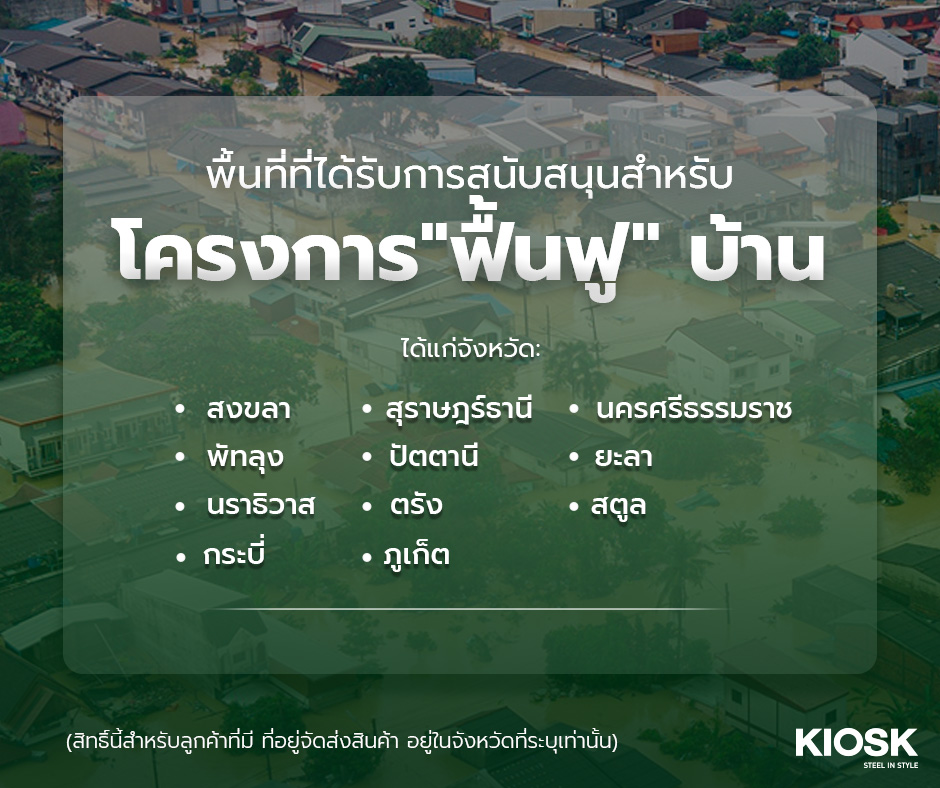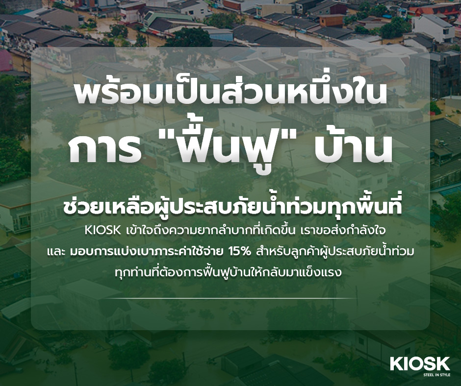 The support provided under this "Southern Thailand Flood Home Restoration Support Program" can be fully combined with other KIOSK promotions, such as brand-wide discounts, year-end gift promotions, or other existing sales campaigns. This ensures that flood victims receive the maximum benefit in restoring their residences.